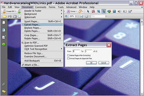 (m is short for Megabytes and g is short for Gigabytes. Please note that on 32Bit machines no more than 2GB can be allocated) - If there is no sufficient physical RAM available, splitting the large PDF file into small, single PDF files will help. Especially when set up to render with Photoshop, which requires quite an amount of RAM itself. There is an option within Adobe Acrobat Professional, found in the Document menu, called Extract Pages. Please check the box Extract pages as seperate files in the dialog, then render the resulting single page PDF files in FSI Pages Converter.