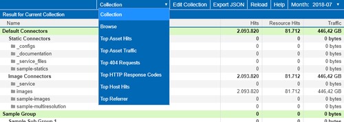 - Collection: display the traffic, hits and unique recource hits for the folders defined by your collection